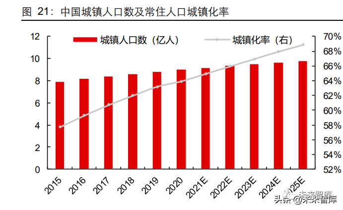 城镇化率提高,务农人口不断下降,第一产业劳动力供给不断下滑。据国家统计局数据 披露,我国城镇人口和城镇化率自 2015 年来不断攀升,预计到 2025 年城镇化率有望 达到 68.8%。与不断攀升的城镇化率形成鲜明对比的是我国第一产业就业人数及其占比, 据农村农业部数据披露,2015 年以来我国第一产业就业人数和占比持续下滑,预计到 2025 年第一产业从业人员占比将低至 20.1%。第一产业劳动力供给量整体明显下滑。