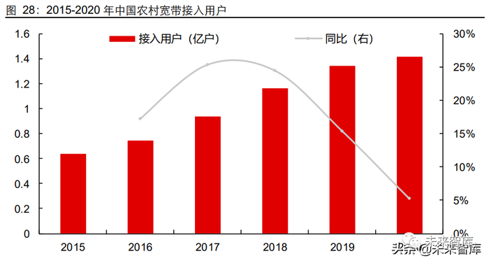 相关技术发展成熟,初级应用迅速落地,各行业巨头纷纷入局智慧农业。截至 2020 年 年末,中国农村宽带接入用户达到 1.42 亿户,较 2019 年末增长 712 万户。全国行政 村通光纤率和 4G 覆盖率均超过 98%。农村网络覆盖率不断提升,为北斗高精度定位应 用提供了基础网络支持,以中大型农机为代表的简单耕种农事具备规模化落地条件。智 慧农业凭借其巨大的市场空间和海量的数据资源吸引各行业巨头纷纷入局。