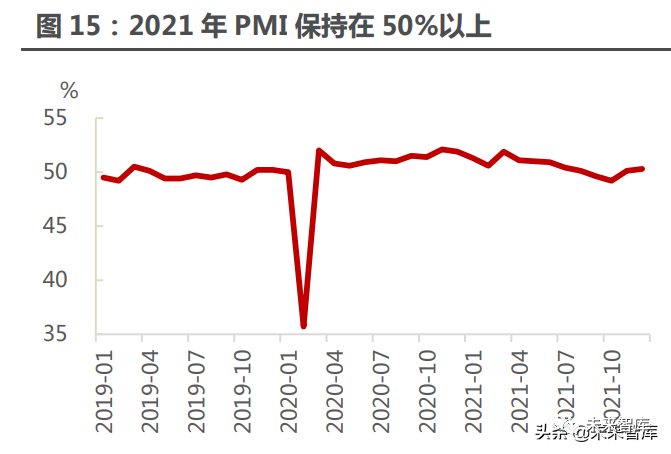 疫情得到有效控制,用电量显著增长。在我国率先控制疫情的背景下,经济需求迎来较快增长, 2021 年 PMI 持续保持 50%的荣枯线以上(仅 8-9 月略低于 50%),社会发电量保持高增速,2021 年社会用电量同比增速达到 10.3%。