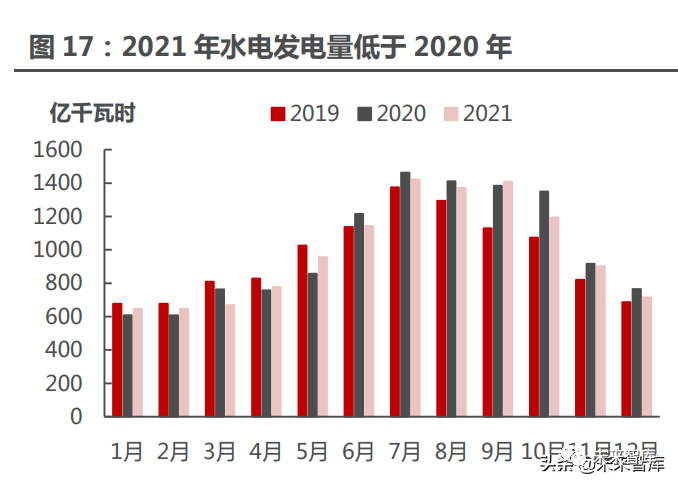 水电出力不足,火电承担高负荷。2021 年电力短缺的核心原因在于需求端制造业/居民部门 的用电需求增长超出了历史趋势,同时遇上水电发电大幅下滑,因此给火电以及其他可再生能源发 电带来了较大的压力。统计局数据显示,受气候影响,水电出力减少,2021 年水电发电量同比下 降 2.5%,受此影响火电发电量大幅增加,2021 年火电发电量增速为 8.4%。