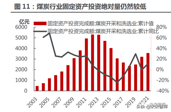在上述背景下,考虑 5 年左右的建设周期,假设产业端在当下转变心态开始新建产能,这批 产能可以贡献产量也在 5 年以后,因此预计未来 5 年以内煤炭行业供给端的增速将始终维持低速。