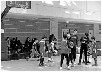 2月26日,北京市海淀区某篮球培训课上,孩子们在练习打篮球。