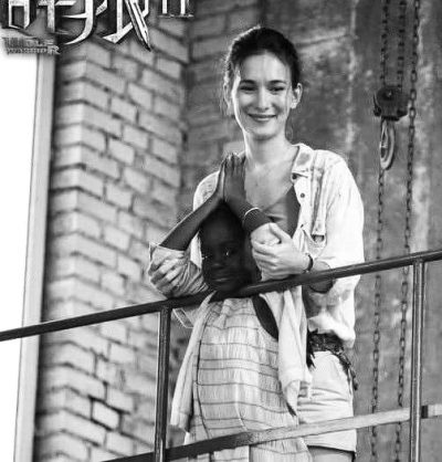 《战狼2》中援非的华裔女医生瑞秋与非洲儿童。