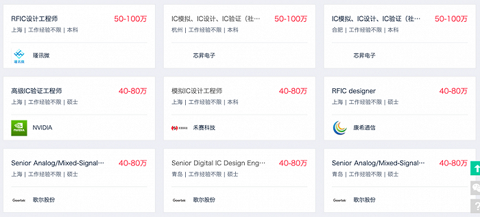 另也有媒体报道,某家位于上海的大厂在芯片设计工程师岗位上为本科应届生开出了20-35K的月薪,甚至直接对标了互联网大厂。而其他地区如成都、青岛等企业招聘的集成电路硕士应届生月薪最高也来到了40K。