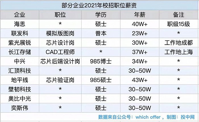 在2021年校招中,有应届毕业生透露称,不少同学拿到了三四份芯片设计公司的offer,工资普遍比去年提高了10-20%左右。