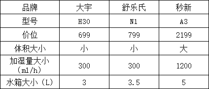 首先我们来看看的就是三款加湿的外观颜值,舒乐氏和大宇都属于小型加湿器,所以采用了方形设计这样可以进一步节省空间。而秒新属于大型加湿器,为了防止碰撞所以采用了圆形设计。