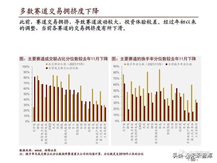 多数赛道交易拥挤度下降:此前,赛道交易拥挤,导致赛道波动较大,投资体验较差。经过年初以来 的调整,当前各赛道的交易拥挤度有所下滑。