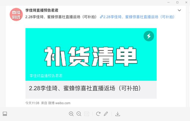 蜜蜂惊喜社与李佳琦的直播预告一起发出