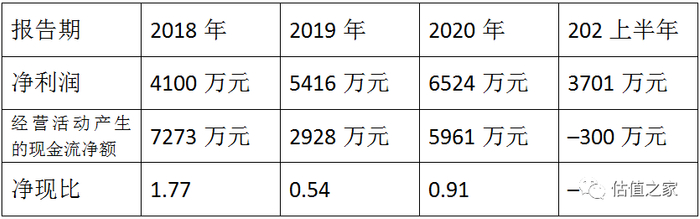 各报告期,除2018年之外,维特偶的经营现金流净额均低于净利润,净现比(经营现金流净额/净利润)均小于1,甚至2021上半年经营现金流净额出现了负值,详见下表: