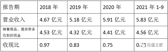 事实上,维特偶各期的营业收入均低于其销售商品、提供劳务收到的现金,即各期收现比(销售商品、提供劳务收到的现金/营业收入)均小于1,详见下表: