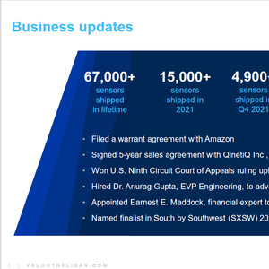 较乐观的数据是,相较于2020年,Velodyne去年激光雷达出货量增幅达到35%。另外,其资产负债表中的现金和短期投资为2.94亿美元。