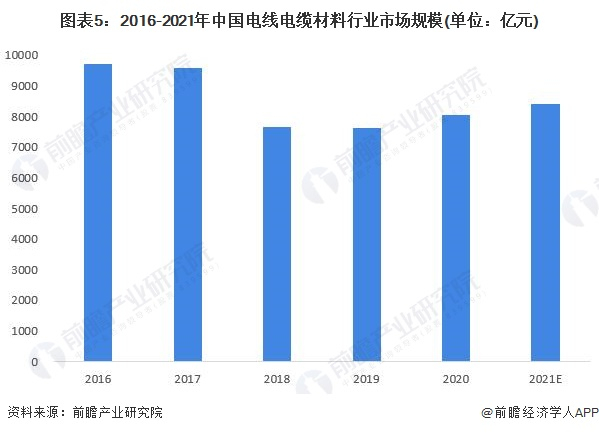 前瞻初步测算,2021年我国电线电缆材料的需求规模约为8423亿元人民币。受政府在新型基础设施建设方面的投资拉动、国内装备制造业水平的提高、以及政府政策引导等积极因素影响,市场需求仍将持续增加。