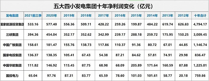 2.十年创造净利润1.40万亿,其中4家发电集团创利超1000亿元。