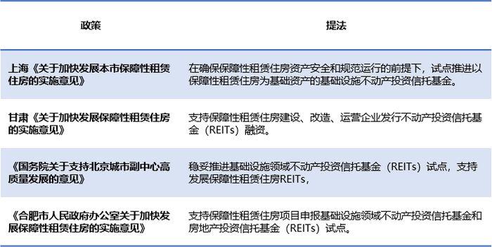 3、支持保障性租赁住房项目申报基础设施领域不动产投资信托基金(REITs)的说法被多次提及