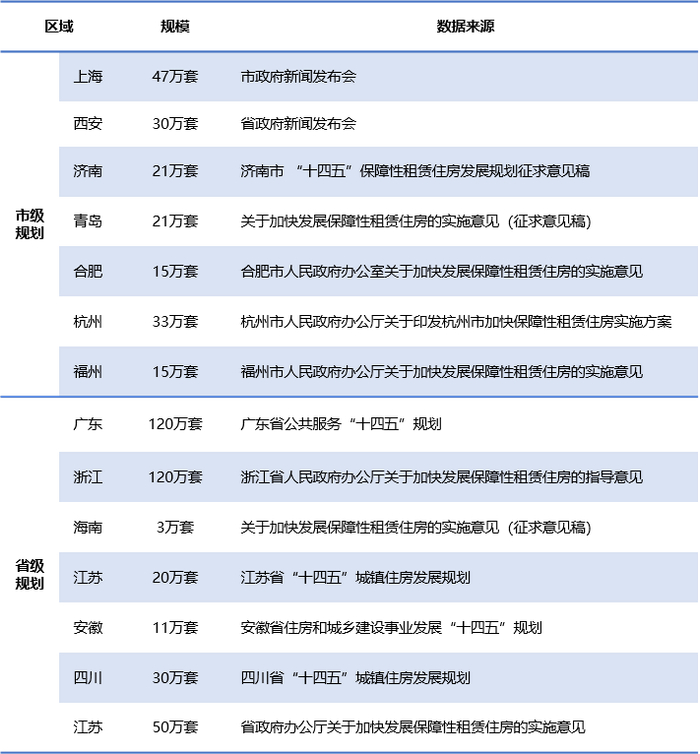 部分省市“十四五”期间保障性租赁住房规划规模