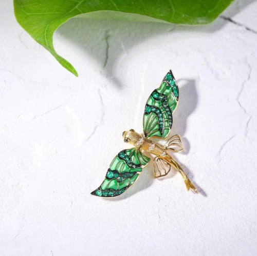 天然祖母绿配钻石及珐琅「飞鱼」吊坠/胸针