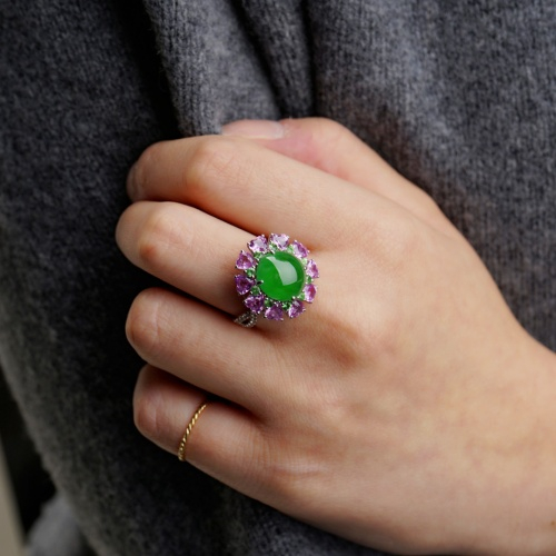 天然翡翠配粉色蓝宝石及钻石戒指