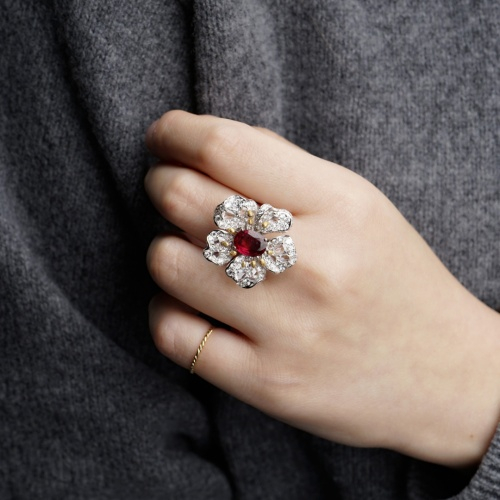 18K白金镶嵌天然红宝石吊坠/戒指,红宝石共重约2.02克拉,产地莫桑比克,未经加热,配镶玫瑰形切割及圆形钻石共重约2.88克拉。