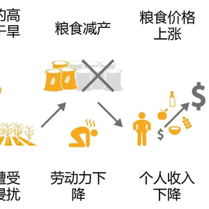 全球范围内,包括干旱、热浪和洪水等高温和极端天气事件都会影响农作物的正常生长。如果全球温度继续上升,将导致越来越多的农作物减产。