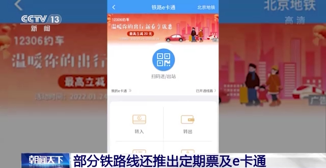 而铁路e卡通则是一种预先存有金钱的类似银行卡的实名制电子卡片产品。2018年10月30日,“铁路e卡通”首次在长株潭城际铁路正式上线投入使用。旅客开通铁路e卡通账户后,即可在铁路12306手机客户端生成乘车码,使用该乘车码就可以在专用检票通道与身份证一起进行自助扫码进站。