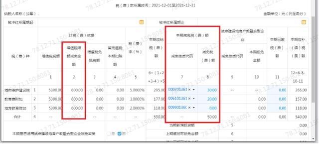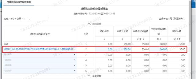 进入附列资料二(附加税费情况表),本期增值税扣减的金额在第二列:增值税限额抵免一栏中显示,与第一列增值税税额相加后计征三项附加税费。若需要继续使用额度抵减附加税费的应纳税(费)额,可在第五列减免性质代码中选择对应代码(0007013612 企业招用建档立卡贫困人口就业扣减城市维护建设税;0007013613企业招用登记失业半年以上人员,零就业家庭、享受城市低保登记失业人员,毕业年度内高校毕业生就业扣减城市维护建设税;0061013610企业招用建档立卡贫困人口就业扣减教育费附加;0061013611企业招用登记失业半年以上人员,零就业家庭、享受城市低保登记失业人员,毕业年度内高校毕业生就业扣减教育费附加;0099013603企业招用建档立卡贫困人口就业扣减地方教育附加;0099013604企业招用登记失业半年以上人员,零就业家庭、享受城市低保登记失业人员,毕业年度内高校毕业生就业扣减地方教育附加),在第六列减免税(费)额中填入相应的额度。