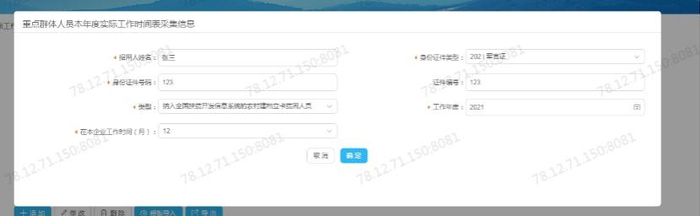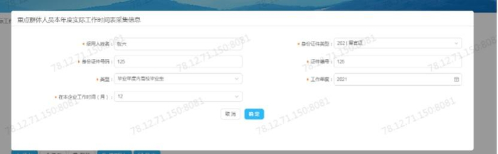 录入符合条件的重点群体人员信息,具体包括:1.纳入全国扶贫开发信息系统的建档立卡贫困人口;2.在人力资源社会保障部门公共就业服务机构登记失业半年以上的人员;3.零就业家庭、享受城市居民最低生活保障家庭劳动年龄内的登记失业人员;4.毕业年度内高校毕业生。
