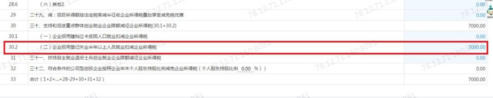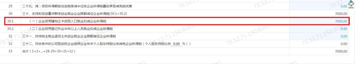 进入《A107040减免所得税优惠明细表》后按需填写第30.1行次--(一)企业招用建档立卡贫困人口就业扣减企业所得税;第30.2行次--(二)企业招用登记失业半年以上人员就业扣减企业所得税。