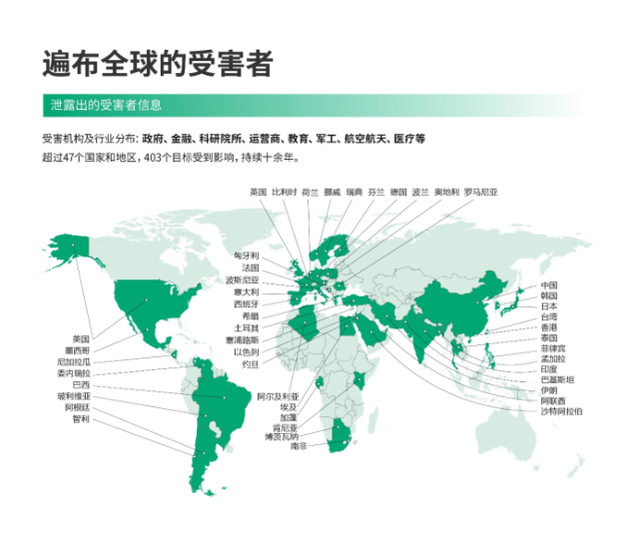 同时,《环球时报》记者获悉,根据NSA机密文档中描述的FOXCID服务器代号,可以发现其针对英国、德国、法国、韩国、波兰、日本、伊朗等全球47个国家及地区发起攻击,403个目标受到影响,潜伏时间长达十几年。