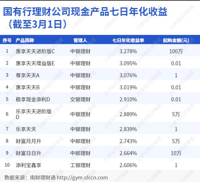 建信“现金类”跌出榜单前十,中银“天天”家族继续霸榜丨机警理财日报(3月2日)