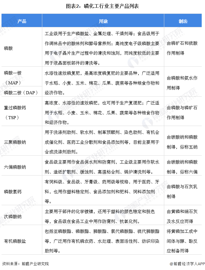 本文核心数据:磷化工行业主要产品列表、磷化工产业链、中国磷化工供给