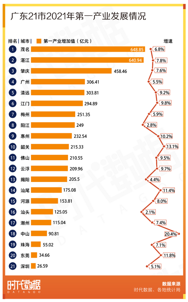 茂名、湛江第一产业增加值超600亿元,高居前二