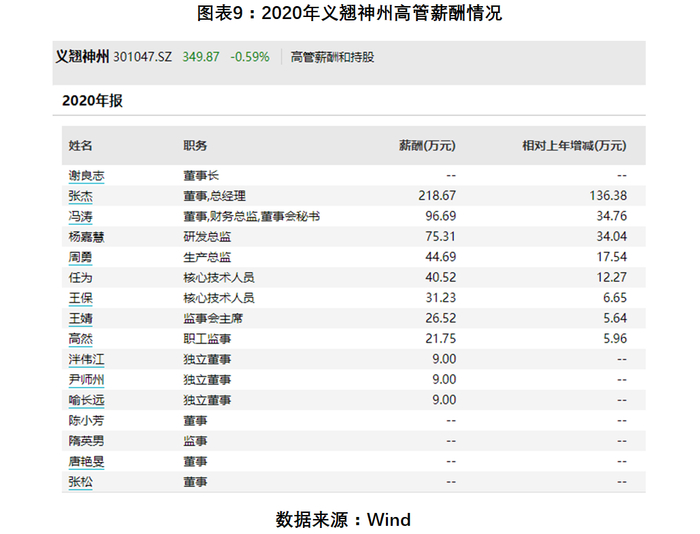 义翘神州的高管薪酬存在一定差距,但差距亦远低于菲鹏生物高管间的差距。总经理张杰的薪酬最高,为218.67万元,约为同公司独立董事尹师州、喻长远、隋英男的24.3倍。