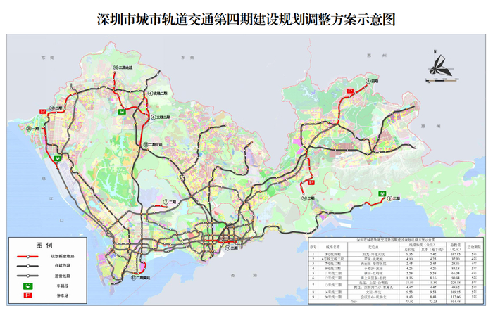 2017年,国家发改委批复《深圳市城市轨道交通第四期建设规划(2017-2022年)》,而在2020年4月,国家发改委官网发布了《关于调整深圳市城市轨道交通第四期建设规划方案的批复》,对比此前,新方案的规划总里程数由148.9公里增加至224.83公里,增加了约51%。