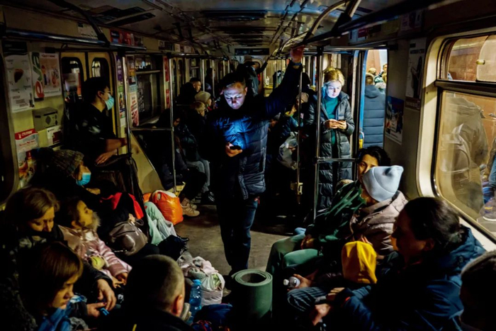 2月24日,乌克兰哈尔科夫,人们在地铁站内避难。图/人民视觉