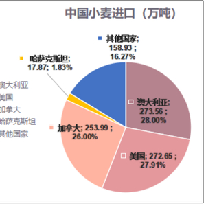 此前中国的小麦进口贸易基本来自于美国、加拿大、澳大利亚,合计占比超过八成。