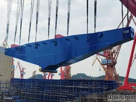 该船新加六个浮箱分段,单个最重达415吨,是文冲修造干坞内单体平移安装最大的分段。文冲修造通过浮吊将分段转运至坞底并通过模块车进行坞内平移,使用三维液压定位仪辅助安装定位,四天内高效完成六个分段的安装定位。