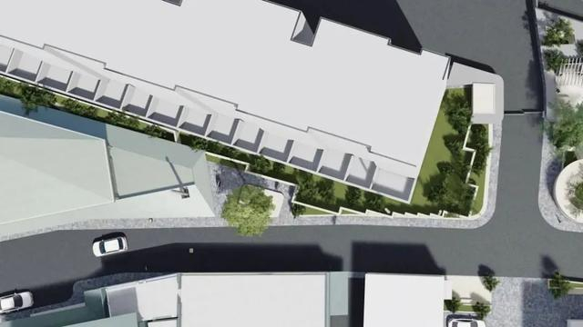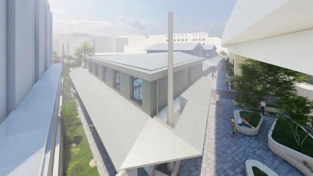 仓库沿高架一侧的围墙拆除,向街道开放,利用更为通透的玻璃界面在明确内部使用功能的同时提供亲切融洽的社区氛围。室内外过渡灰空间的连廊为居民提供驻留场所,高架下方通过绿化花台形成沿街庭院,使室内外空间联动呈现开放的姿态。