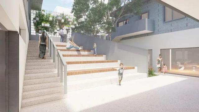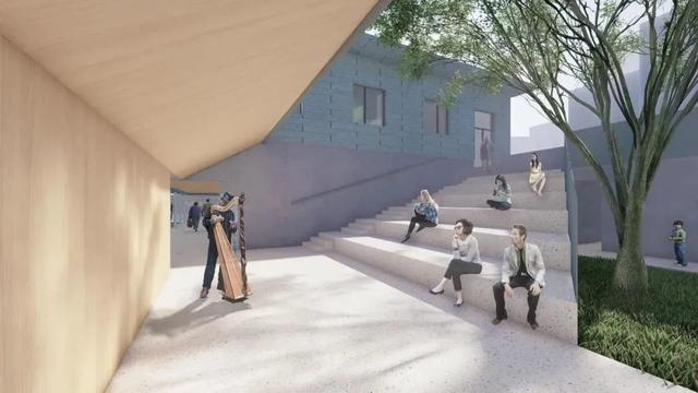 邻里汇改造产生的新空间,一层的功能置换为社区服务型商业,以社区图书馆、展厅、放映厅、日常休闲功能为主;二层置入社区服务空间,活动中心办公、会议室等服务功能,成为社区居民15分钟社区生活圈的重要组成部分,也是激活整条凯旋南路的核心衔接点。