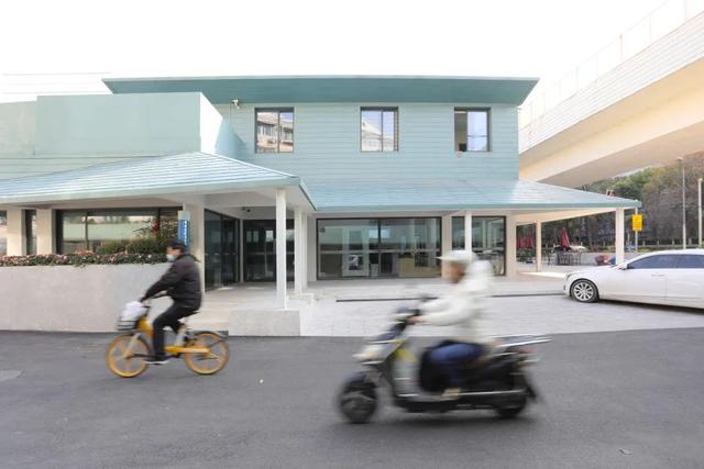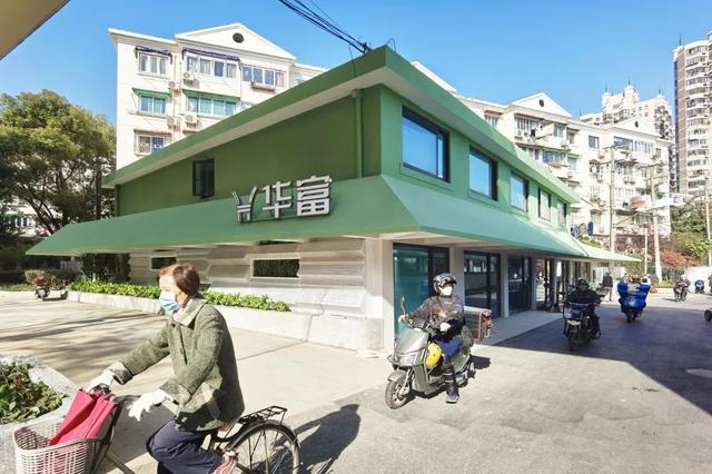 在上海徐汇区的漕河泾街道华富社区凯旋南路入口,两幢粉刷着明亮的“蒂芙尼蓝”颜色的双层尖顶建筑,在周边环境中显得格外醒目。这是2021年10月14日重阳节才启动揭幕的“华富邻里汇”。