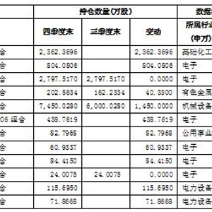 从行业分布看,全国社保基金持有的这9家公司分属电子(5只)、基础化工(1只)、机械设备(1只)、电气设备(1只),全国社保基金去年四季度持股或偏爱电子行业公司。