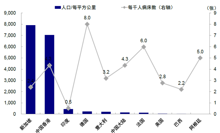 图表3:中国香港人口密度较高,也成为疫情扩散较快的客观原因之一