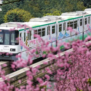 这里正是重庆轨道交通2号线佛图关公园段,逶迤连绵400米的美人梅正花团锦簇开到荼蘼,一列列玉绿、苔藓绿 、森林绿的单轨列车正穿行花海,如开往春天的列车。这道赏心悦目的独特城市景观刷爆了网络和朋友圈。去年春天,外交部发言人华春莹也在推特上发布了列车穿行佛图关花海的短视频,华春莹配文称,旅行于春暖花开的城市之中,这是重庆单轨带给居民和游客的乐趣。