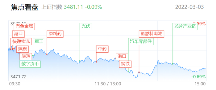财联社3月3日讯,今日指数弱势,但短线情绪较为活跃,近80只个股涨停,近30只个股连板。板块上,中俄贸易概念和俄乌冲突概念全天强势,板块内皆近20股涨停。此外盘中煤炭、燃气、中药、旅游、氢能源等板块轮动活跃。