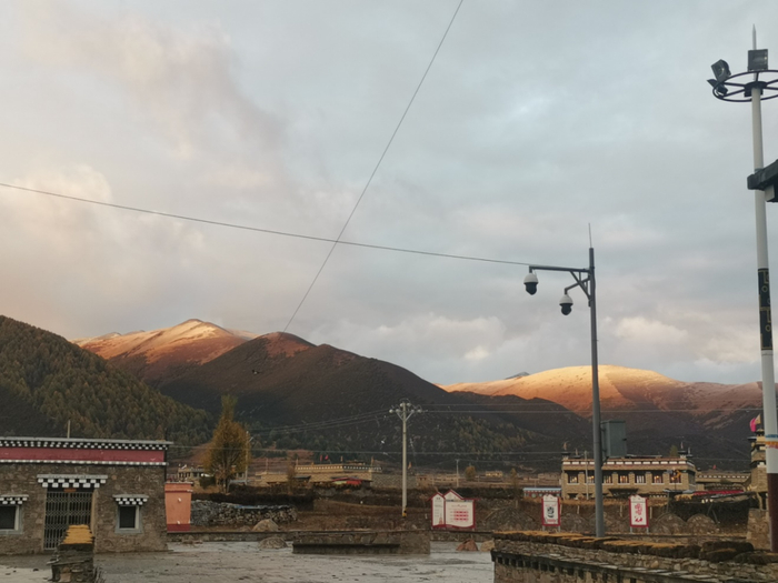 我们在稻城工作了4天。在我们到达第一个样点—桑堆镇时,一只隐纹花松鼠恰巧在小溪旁饮水,呆呆地望着我们,毫不畏生,彰显人与自然和谐相处的美丽画面。但是在每天经过的路上,我们时常会发现一两只被车辆撞死的野兔,也说明人类对环境的干扰正在严重影响动物的正常栖息,如何解决这个问题也值得我们今后去思考。桑堆镇海拔4000m左右,由于天气寒冷,当地人10点左右才起来准备早餐,我们早上要饿着肚子前往样点。在我们临走的前一天,山上下起了雪,还好积雪不深,我们抓紧取回采集工具后,立马赶往下一个采样点。由于任务的紧迫,我们并没有去稻城景区,但沿途欣赏了尊胜白塔的庄严,感受到了俄初村关卡处藏族同胞的热情和淳朴的笑容。