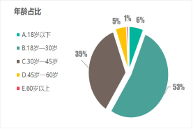 问卷调查显示,参与本次线上调查的男女比例分别是:男性65%、女性35%。从年龄来看,消费者主要集中在18-45岁,占比达88%。其中,53%在18岁-30岁,为办卡消费主力军;35%在30岁-45岁之间;18岁以下和45-60岁分别占比6%、5%;60岁以上仅占比1%。从职业来看,以公司职员为主,占比33%;其次是事业单位/公务员,占比28%;自由职业者和专业人士(如律师/医生)分别占比14%、12%,家务工作者和学生均占比5%,其他占比3%。