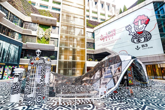 ● 由mr doodle涂鸦元素包裹的上海k11一层户外广场