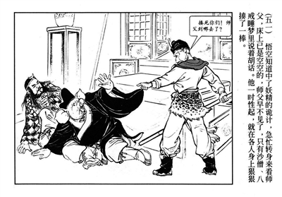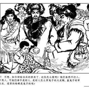 而连环画的本质并不在于表现画面氛围,而是叙事。故事是最重要的。连环画中,没有角色的场景或物品特写本身就极为稀少,即使偶尔有,那随之出现的一定也还有旁白。一幕一幕的场景切换形成的固定的叙事节奏。在表现故事上,连环画并不试图用画面将读者带入某种情绪和氛围,而意在用文字将画面串联起来,形成一种带着固定韵律的流动感。