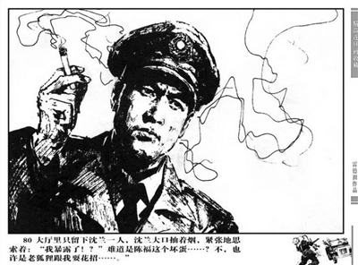 那么如果一个作者没有看过实物该怎么办?那就没有办法,只能按照已有的认知去推着画出一个大概的模样来,这点尤其是在上世纪五十年代的连环画里比较明显,比如讲述飞机战斗英雄的连环画,需要画飞行员在机舱里的画面,可是画家们谁都没亲眼见过机舱里到底是什么样子的,只能沿着驾驶舱勾一个轮廓,从透视关系上来看,很明显就是从开车的动作上改过来的,图片到了人物脖颈的地方就截止了,避免去画操纵杆和仪表盘之类的地方。