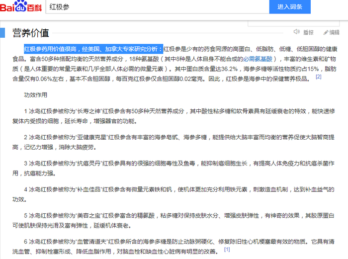 要知道红极参可是海参中的精品,与普通海参不同,它十分稀有,一般生长在加拿大和冰岛两个地方。