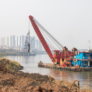 3月2日下午4时,高明大桥下游1.6公里处的西江边停满候泊作业的货船,斜照的阳光给江面镀上了一层金色,远望像一幅油画。高荷港码头建设现场,工人们忙碌的身影与抓斗船、挖掘机、水泥搅拌桩机等机器发出的轰鸣声,共同奏响了一首火热的“开工曲”,一个全新的集装箱码头已经初具雏形。